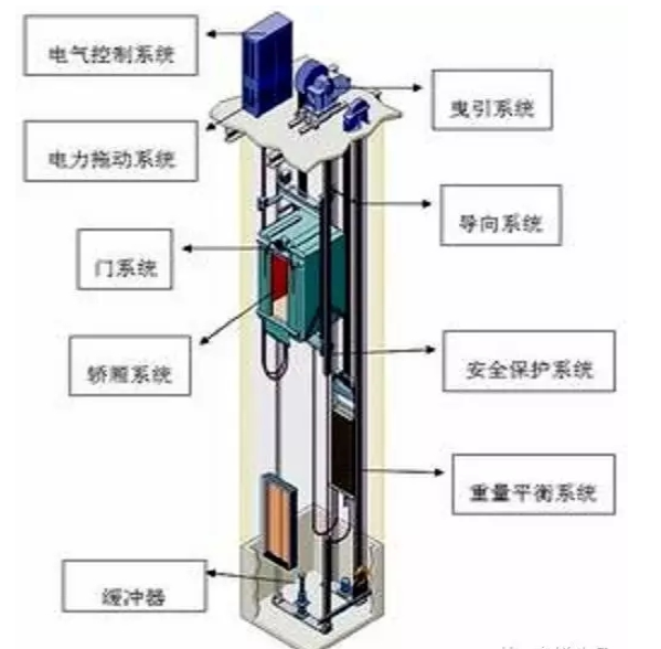 曳引驅(qū)動電梯(以下簡稱電梯)是指提升繩靠主機的驅(qū)動輪繩槽的摩擦力驅(qū)動的電梯,對于我們乘坐的電梯,也就是曳引驅(qū)動乘客電梯,都屬于這種電梯。一、曳引系統(tǒng) 電梯曳系統(tǒng)的功能是輸出動力和傳遞動力,驅(qū)動電梯運行。主要由曳引機,曳引鋼絲繩,導(dǎo)向輪和反繩輪組成。拽引機為電…