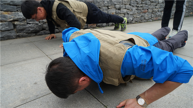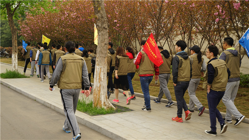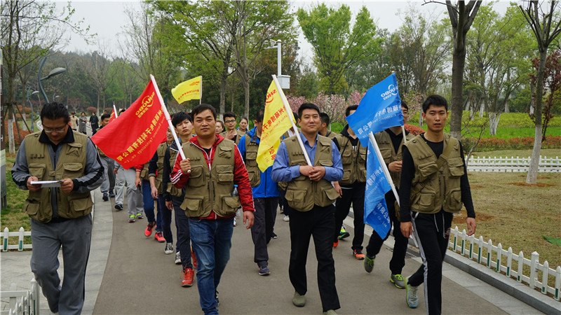 首先是從公司步行至泉山森林公園,徒步大約一小時的時間,平時工作之余很少運(yùn)動,這也算是一種鍛煉和突破,在行進(jìn)的途中保持隊形,保持企業(yè)形象,也沒有同事掉隊。此次活動,通過抓鬮分成紅黃藍(lán)三個小組。