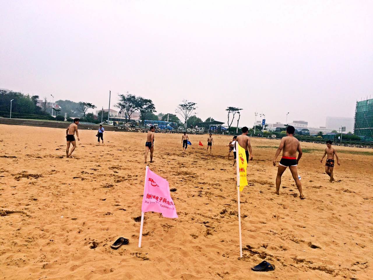 經(jīng)過六七個小時的長途大巴,到達此次行程的第一個景點,青島黃島金沙灘,金沙灘位于山東半島南端黃海之濱青島市黃島區(qū)金沙灘路。南瀕黃海,呈月牙形東西伸展,全長3500多米,寬300米。金沙灘水清灘平,沙細如粉,色澤如金,海水湛藍,水天一色,故稱“金沙灘”。青島金沙灘是我國沙質(zhì)最細、面積最大、風(fēng)景最美的沙灘,號稱“亞洲第一灘”。我們懷著激動的心情,踏上金沙灘,海風(fēng)習(xí)習(xí),潮來汐往,我們盡情的享受自然的饋贈,踏浪、戲水、撿貝殼、筑沙雕,感嘆大自然的鬼斧神工。金沙灘景致怡人,幾個小時的時間很快過去,大家玩的不亦樂乎,男同事們還在沙灘上踢起了足球。