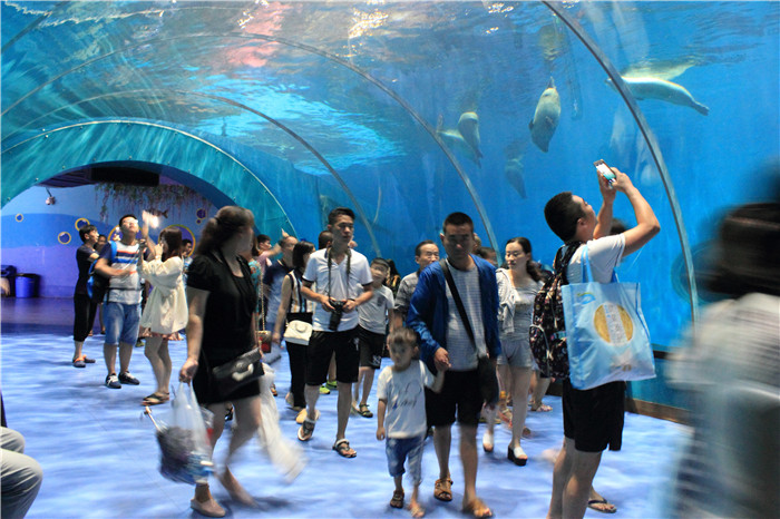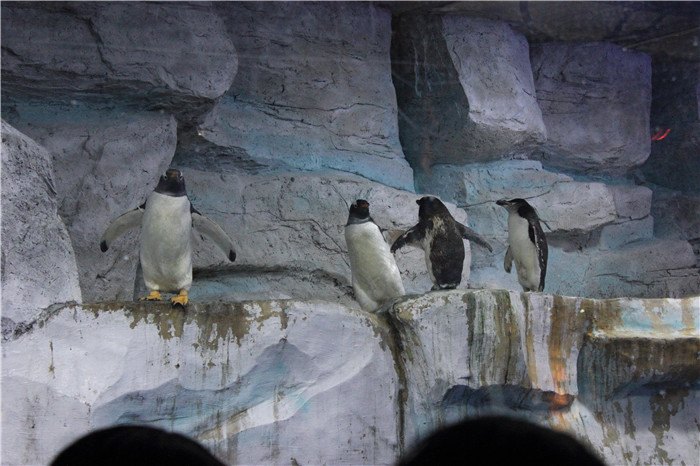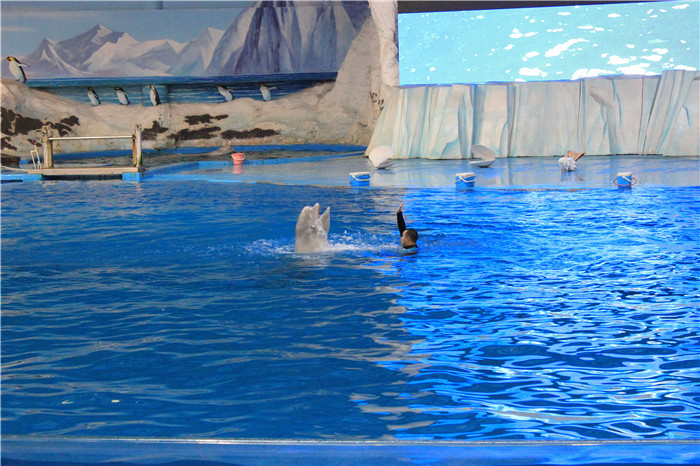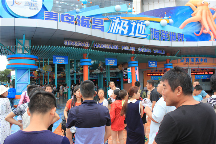 第二天,清晨,伴著陣雨,我們?nèi)コ栽绮?,青島的團餐確實不敢恭維,不過物價在這里。吃過早飯,8點鐘我們到了青島極地海洋世界,青島極地海洋世界是 “海昌集團” 在青島投資興建的一個包含海洋動物展示,極地動 物展示,海洋極地動物 表演以 及海洋科技館,漁人碼頭 等為主題的綜合性 海洋主題公園。整個項目占地14萬平方米,包含:海洋極地館、海洋科技館、海洋娛樂大道、漁人碼頭等項目。我們跟著導(dǎo)游集體入場,小孩子還是比較興奮的,浪漫的白鯨、兇悍的北極熊、溫順的企鵝、靈巧的海獺、龐大的北海獅、北極狼、北極狐、五彩斑斕的海洋魚類、神秘的愛斯基摩人、純木制的極地雪橇、巧奪天工的北極雪屋,從不同角度展現(xiàn)了兩極地區(qū)的風(fēng)土人情和自然風(fēng)貌,讓大家體驗冰雪極地生活的美妙感覺。極地海洋館單向觀賞不可逆行,最后來到了海洋動物表演場,觀賞到白鯨、海豚、海獅等海洋動物明星傾力奉獻的表演,感受人與自然的融合,人與動物的和諧。