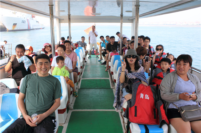 第三天,早上吃過早餐,來到青島奧林匹克帆船中心,青島奧林匹克帆船中心坐落于青島市東部新區(qū)浮山灣畔,北海船廠原址,毗鄰五四廣場和東海路,市內(nèi)的著名風(fēng)景點“燕島秋潮”位于基地內(nèi)燕兒島山的東南角,該地依山面海風(fēng)景優(yōu)美,2008年第29屆奧運會和13屆殘奧會帆船比賽在此舉行。感受著清晨的海風(fēng),遙望著遠處“五月的風(fēng)”和帆船基地,不遠處,高樓聳立,這個海邊小鎮(zhèn)已經(jīng)變成了一座現(xiàn)代化的城市。接著乘船與大海零距離接觸,棧橋、皇宮、小青島,青島這座城從海上望去,依舊風(fēng)華不減,還遠遠看到了軍事演習(xí)歸來的戰(zhàn)艦和核潛艇,彰顯我國日益增強的軍事力量,祖國的領(lǐng)海不容侵犯。