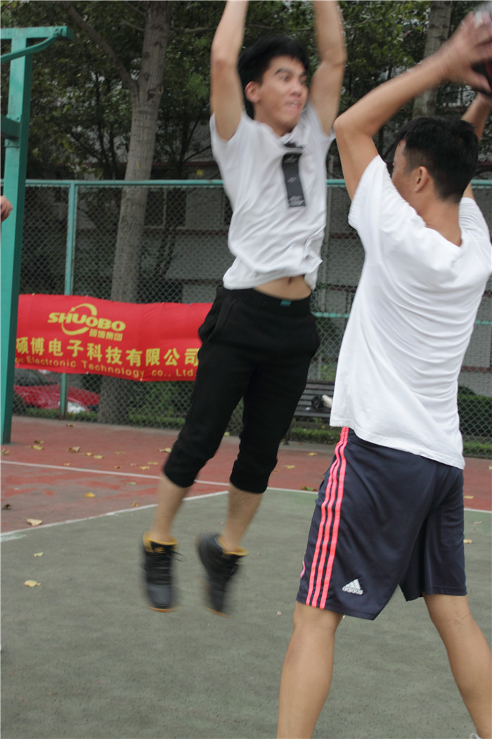 “搶球、突破、得分……”一幕幕精彩的瞬間將賽場推向高潮;“加油!加油!加油!”的口號聲沸騰了整個球場,雖然天公不作美,陰雨天氣,但絲毫沒有影響在場人員激動的心情。公司“迎國慶賀中秋”職工籃球賽在全體員工、運動員、裁判員、工作人員的共同努力下,隨著兩隊人員精彩角逐步入尾聲,2017年9月30日在徐州碩博電子科技有限公司籃球場圓滿落下帷幕。