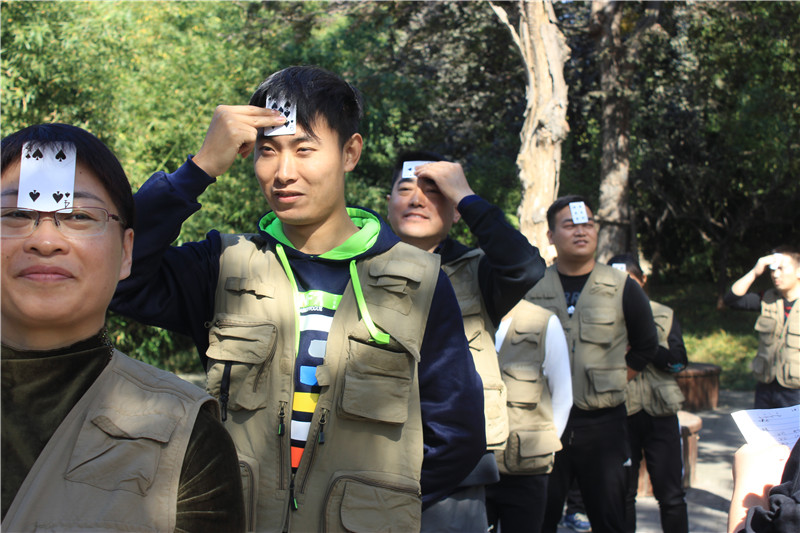 公司員工通過組織人員抓鬮分為三組,活動主要圍繞消除隔閡、團(tuán)隊協(xié)作、相互信任、組織分工等幾個方面來進(jìn)行,首先是團(tuán)隊破冰,每組人員站一排,介紹自己和自己前面的所有人。開始只是介紹姓名、部門還是很簡單的,接著,還要記住前面所有人的撲克牌數(shù)字,數(shù)字是隨機(jī)的,這時候大家想的都是怎么作弊,也有人是用心記住前面每個人介紹時說的話,用心記住的時候,心思不在投機(jī)上,正確率也會上升。