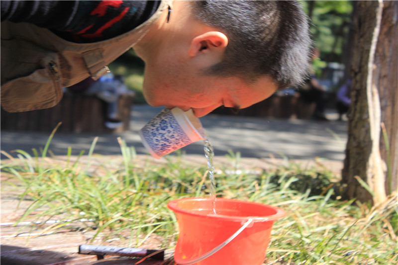 接著進(jìn)行了銜紙杯傳水,這里除了速度還有倒水人員的掌握,例如紅隊,雖然速度最快,但最終因為水量最少而與第一名失之交臂。