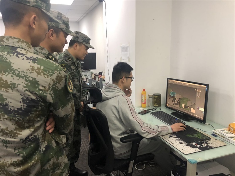 劉主任一行首先參觀了我們的生產(chǎn)車間,隨后參觀了軟件研發(fā)部門,對研發(fā)部門嚴(yán)謹(jǐn)?shù)墓ぷ鲬B(tài)度給與了高度的肯定,對于軟件研發(fā)的過程建模、場景、代碼等也有了一定的了解,主要是利用虛擬現(xiàn)實技術(shù),以數(shù)字化信息為基礎(chǔ),對學(xué)員進(jìn)行數(shù)字化訓(xùn)練,實現(xiàn)教育的信息化,提高院系的辦學(xué)水平和管理水平。該套鉆機(jī)實訓(xùn)設(shè)備主要使用虛擬現(xiàn)實技術(shù)、可視化技術(shù)、計算機(jī)網(wǎng)絡(luò)、圖形系統(tǒng)工具、圖像信息處理、分布式系統(tǒng)和人工智能等領(lǐng)域的科學(xué)研究和技術(shù)開發(fā),滿足虛擬仿真擬真化交互,考核的需要。