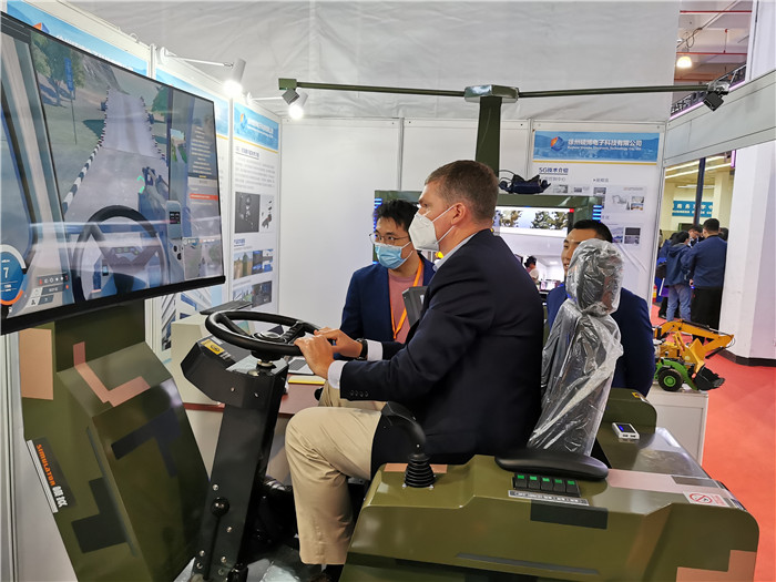 此次展會,我司的參展設備,是我司根據中國人民解放軍陸軍工程大學要求研制的工程機械裝備仿真模擬器,輪式裝載機仿真模擬器、高速輪式挖掘機仿真模擬器及飛機充氧車仿真模擬器,此次展出的設備,主要采用模組機的概念來設計,通過簡單的硬件模塊更換,自動識別軟件系統(tǒng),從而切換不同設備的模擬器,其中高挖模組機配備六自由度平臺,讓模擬器操作更加真實,更符合真機體感。