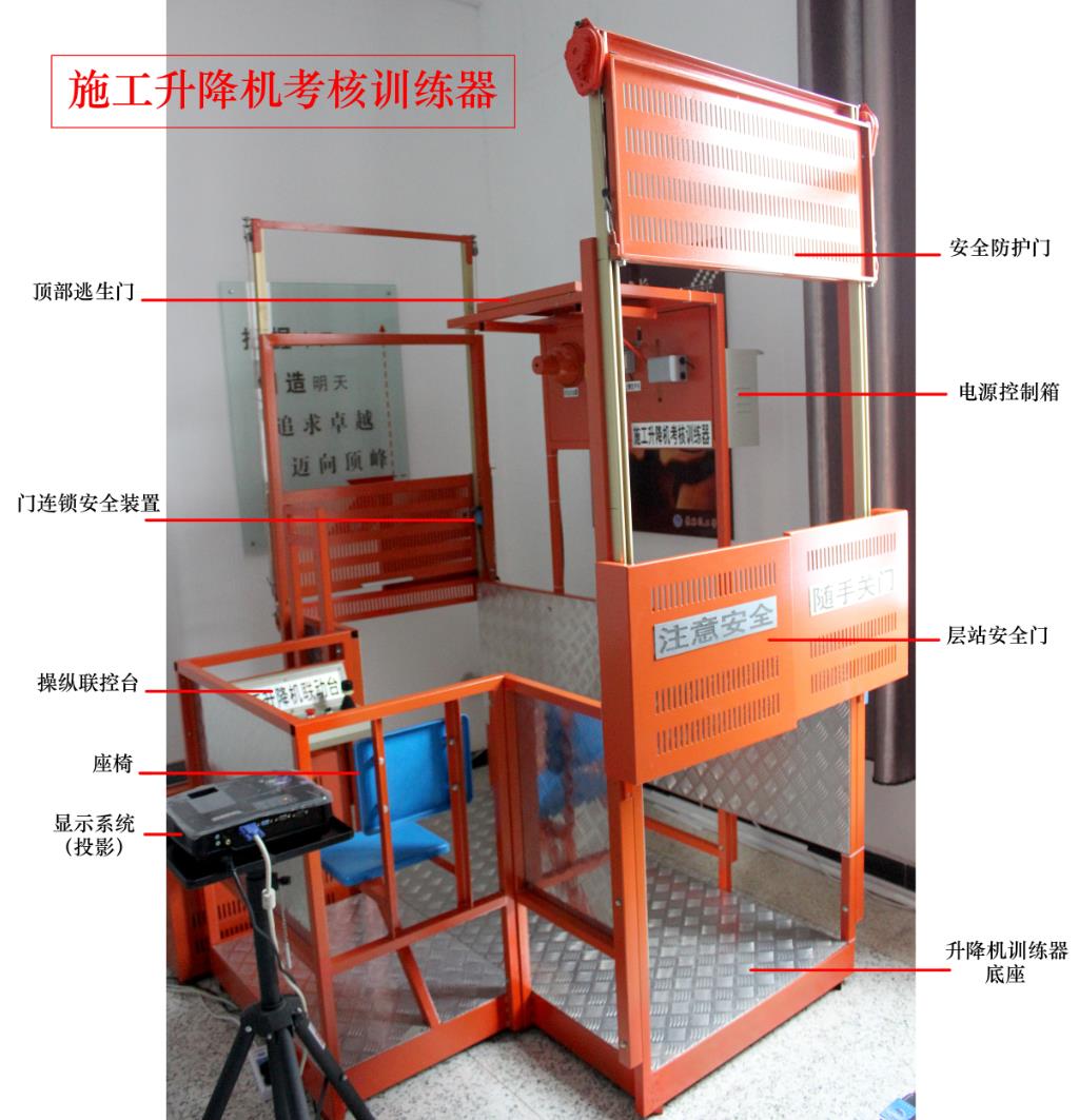 施工升降機(jī)模擬教學(xué)設(shè)備由軟硬件構(gòu)成。 軟件部分有:引導(dǎo)訓(xùn)練、自由訓(xùn)練、操作考核、視頻播放、文檔資料、理論考核等內(nèi)容;硬件采用與真機(jī)完全相同結(jié)構(gòu)進(jìn)行設(shè)計(jì)生產(chǎn),包括:安全防護(hù)門、原裝聯(lián)動(dòng)臺(tái)、上下限位器、安全防墜器、顯示系統(tǒng)等配件,其操作步驟和真機(jī)操作完全一致。