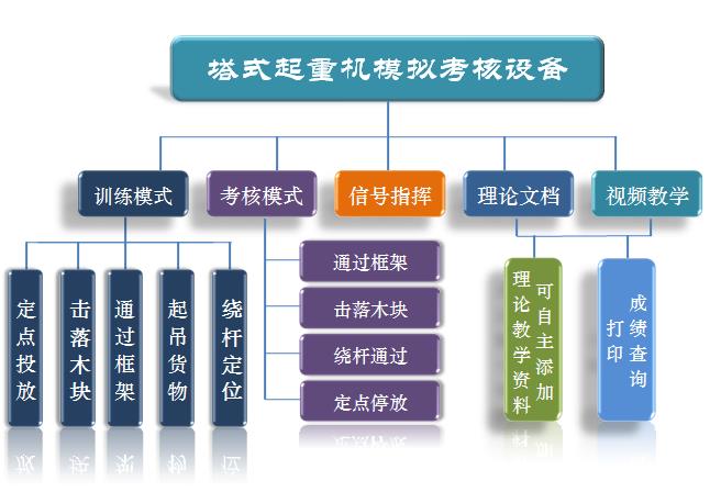 該模擬教學(xué)設(shè)備配備新款塔吊模擬軟件V8.5專(zhuān)業(yè)版,包含理論學(xué)習(xí)、操作訓(xùn)練、實(shí)訓(xùn)考核、理論考核等仿真課題。