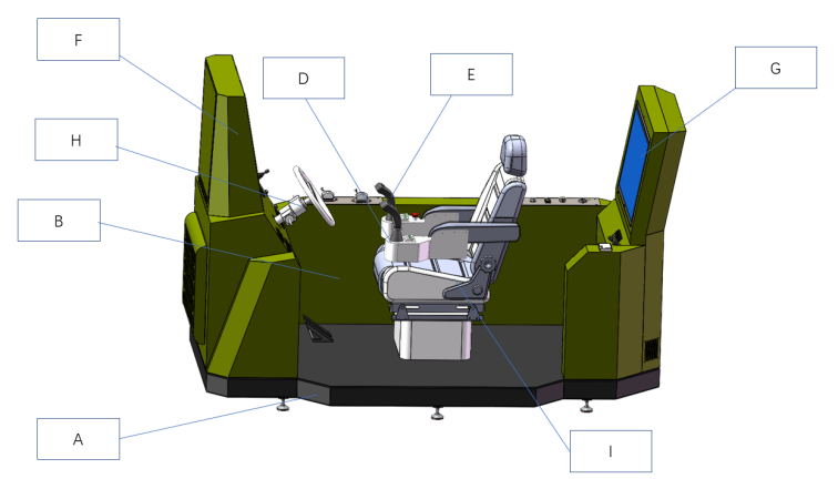 主要包括硬件和軟件兩部分。 硬件:包括主機、顯示設(shè)備、半實物仿真設(shè)備(駕駛室各類顯示儀表總成行走操控裝置總成、駕駛室座椅總成、轉(zhuǎn)向操作總成、作業(yè)操作總成、檔位操控總成、制動操作總成、油門操控裝置總成)、音頻設(shè)備、各類傳感器等。